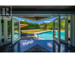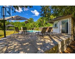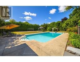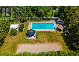 Tucked away on one of Courtice's most desirable roads, this rare in-town property spans a private, fully landscaped 0.75-acre lot designed for resort-style living. This impressive 3+1 bedroom, 4-bath custom home offers an unmatched outdoor retreat featuring a 20' x 40' saltwater pool, a cabana complete with change room, bar area with sink and bar fridge, a private bathroom, outdoor shower, and a real sand volleyball court surrounded by mature trees, lush greenery, and a pond with goldfish. The heated double garage includes rear yard access, and the expansive driveway accommodates up to 20 vehicles, plus designated RV and trailer parking. Inside, the home offers warm and inviting spaces, including a formal dining room with pocket French doors and hardwood floors, and a cozy living room with a wood-burning fireplace, pot lights, and walkout to the backyard. The primary bedroom is a luxurious escape with its own composite deck and covered porch featuring skylights and a hot tub, two large closets, and a five-piece ensuite. A finished basement provides additional flexible living space, making this one-of-a-kind home ideal for both everyday comfort and exceptional entertaining. Ideally located just minutes from top-rated schools, parks, shopping, restaurants, and convenient access to Highway 401 and 418, this property combines privacy with everyday convenience. (id:50886)