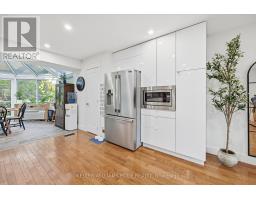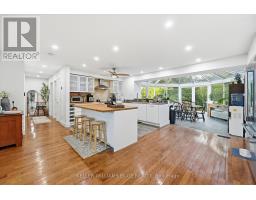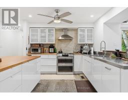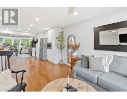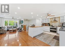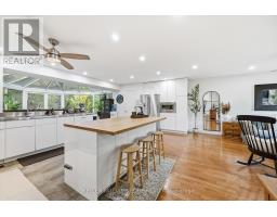 Discover this beautifully updated raised bungalow, perfectly nestled on a huge pie-shaped lot surrounded by trees -a private, nature lover's paradise. This move-in-ready home combines modern style, thoughtful upgrades, and inviting spaces designed for everyday comfort and memorable entertaining. Step inside to a welcoming foyer with wood staircases and enjoy a carpet-free interior featuring h, tile, and luxury vinyl flooring. Pot lights and contemporary ceiling fans enhance the bright, open-concept main level. The stunning white kitchen stands out with butcher-block & restaurant-style stainless steel countertops, a seated island, pantry, b/i wall microwave, and a double-oven gas range. The kitchen overlooks the show-stopping glass solarium dining area -filled with natural light and offering two walkouts to both decks for seamless indoor-outdoor living. The primary bedroom is complete with a wall-mounted electric fireplace, reclaimed wood mantle, and private access to the hot tub. Two additional bedrooms and an updated 4-piece bath complete the main level. The fully finished lower level offers exceptional versatility, featuring a cozy family room with gas f/p & white brick surround, a bonus room ideal for home gym, office, or guest room, a second 4-piece bath, and laundry. Your easy-to-maintain backyard awaits with a relaxing hot tub, multiple fruit trees, raised garden beds, a greenhouse attached to the shed, three composters, step-stones, and a tranquil pond with an aerator -perfect for gardening enthusiasts and those who enjoy a peaceful outdoor setting. Additional features include sliding barn doors, inside access from the garage, ample storage, furnace & A/C (2024), updated electrical (most 2021), rough-in for c/vac, two rough-ins for EV chargers, and a resealed double driveway accommodating up to six cars. Ideally located close to schools, parks, shopping, golf, and transit. This home offers the complete package of comfort, style, and a natural outdoor setting. (id:50886)
