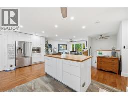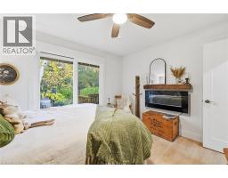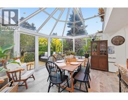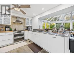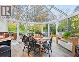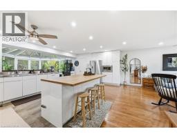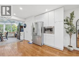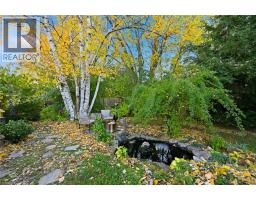 Discover this beautifully updated raised bungalow, perfectly nestled on a huge pie-shaped lot surrounded by trees—a private, nature lover's paradise. This move-in-ready home combines modern style, thoughtful upgrades, and inviting spaces designed for everyday comfort and memorable entertaining. Step inside to a welcoming foyer with wood staircases and enjoy a carpet-free interior featuring h, tile, and luxury vinyl flooring. Pot lights and contemporary ceiling fans enhance the bright, open-concept main level. The stunning white kitchen stands out with butcher-block & restaurant-style stainless steel countertops, a seated island, pantry, b/i wall microwave, and a double-oven gas range. The kitchen overlooks the show-stopping glass solarium dining area -filled with natural light and offering two walkouts to both decks for seamless indoor-outdoor living. The primary bedroom is complete with a wall-mounted electric fireplace, reclaimed wood mantle, and private access to the hot tub. Two additional bedrooms and an updated 4-piece bath complete the main level. The fully finished lower level offers exceptional versatility featuring a cozy family room with gas f/p & white brick surround, a bonus room ideal for home gym, office, or guest room, a second 4-piece bath, and laundry. Your easy-to-maintain backyard awaits with a relaxing hot tub, multiple fruit trees, raised garden beds, a greenhouse attached to the shed, three composters, step-stones, and a tranquil pond with an aerator—perfect for gardening enthusiasts and those who enjoy a peaceful outdoor setting. Additional features include sliding barn doors, inside access from the garage, ample storage, furnace & A/C (2024), updated electrical (most 2021), rough-in for c/vac, two rough-ins for EV chargers, and a resealed double driveway accommodating up to six cars. Ideally located close to schools, parks, shopping, golf, and transit. This home offers the complete package of comfort, style, and a natural outdoor setting. (id:50886)