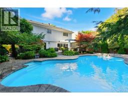 Welcome to this beautifully renovated home in one of Burlington’s most established and family-friendly neighbourhoods! Ideally located near parks, shopping, and quick highway access, this stunning 2-storey residence has been thoughtfully redesigned with quality finishes and attention to detail. The open-concept main floor showcases a modern kitchen with gas cooktop, double wall oven, large windows, and island seating that flows seamlessly into the dining and living rooms, perfect for everyday living and entertaining. A versatile bonus room on the main level, currently a TV lounge, could serve as a home office, playroom, or even a main-floor bedroom. Upstairs, brand-new carpeting leads to four spacious bedrooms. The primary retreat offers two closets (one walk-in) and a beautifully updated 4-piece ensuite, while the updated main bath features a large glass shower. The fully finished lower level includes new carpeting, a games area with pool table, and a cozy rec room for movie or sports nights. Step outside to your private backyard paradise! The heated inground pool is surrounded by mature trees, lush gardens, and professional landscaping for complete privacy. An expansive deck offers multiple seating areas, a covered lounge with gas fire feature, gas BBQ hookup, and ambient lighting, perfect for day or night enjoyment. This exceptional property combines comfort, style, and outdoor luxury in the heart of Brant Hills. (id:50886)