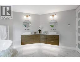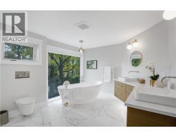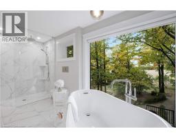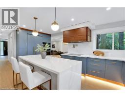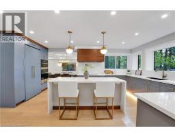 Welcome to your personal retreat in the city! Nestled in a sought-after neighborhood, this thoughtfully redesigned home blends modern luxury with nature at your doorstep. Every detail has been carefully crafted for both comfort and style. From the moment you arrive, the landscaped exterior, oversized windows, and covered porch create an inviting first impression. Inside, a grand staircase and designer lighting set the tone. The formal sitting room flows into a bright dining area, both featuring coffered ceilings and elegant fixtures. The chef’s kitchen shines with custom cabinetry, Jenn Air appliances, a pot filler, and a waterfall island with breakfast seating. Large windows frame views of the private backyard, filling the space with light. A walk-in pantry ensures ample storage. The family room is perfect for relaxing, with soaring ceilings and a stunning floor-to-ceiling fireplace. This level also offers a functional laundry suite, mud room, powder room, and home office. Upstairs, four spacious bedrooms feature hardwood floors and large closets. The primary suite offers forest views, a custom walk-in closet, and a spa-like ensuite with a walk-in shower, heated floors, and a freestanding tub. Another ensuite and a Jack and Jill bathroom offer all the convenience and comforts your family needs. The finished lower level includes a rec room, bar, 4 piece bath, a 5th bedroom and a private entry. Outside, enjoy the expansive deck, covered patio, and mature trees backing onto David Johnston Technology Park. This exceptional home offers it all—schedule your tour today! (id:50886)