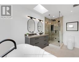 An architectural masterpiece in the heart of East York! This custom residence pairs striking modern design with refined functionality, with the main level defined by soaring floor-to-ceiling windows, dramatic open-to-above sightlines, and a seamless flow for both everyday living and entertaining. The chef's kitchen is a true statement with gorgeous quartz counters and backsplash, Smart built-in appliances, a custom built-in wine rack, and a large centre island with a custom family table. The open concept family room creates the perfect entertaining hub adjacent to the dining and kitchen featuring built-in speakers, custom built-in media center and a walkout to the large deck. A floating staircase rises to the skylit upper level where a serene den anchors the space and the primary suite offers a private retreat with a custom walk-in closet and a spa-like 7-piece ensuite with heated floors, double vanity beneath a skylight, glass shower, and freestanding soaker tub! The second level also offers 3 additional generous sized bedrooms with built-in closets, two additional 4-piece bathrooms and a convenient laundry! The fully finished legal lower level with heated floors, separate entrance, expansive above grade windows and walk out to its own patio area feels more like a main floor! Complete with a further designer kitchen, 1-bedroom, full washroom and a 2nd laundry it is a perfect income producing suite. The gorgeous backyard is fully fenced and landscaped with a custom pergola. This home is a rare opportunity to own a one-of-a-kind property that balances luxury, design, and function in the heart of East York! Just minutes from top-rated schools, the vibrant Danforth, lush parks, the DVP, and TTC access. (id:50886)