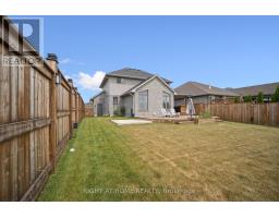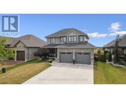 Welcome to 24 Oakmont - a stylish and spacious 4+1 Bed, 2.5 Bath home on a premium lot in the sought after Shaw Valley Community. Backing onto peaceful city-owned greenspace and a proposed park, this MP Custom Home blends function and flair with a concrete driveway, covered front porch, and beautifully landscaped yard. The entertainer's backyard features a two-tier deck with ambient lighting, a live-edge bar, and gas BBQ hookup. Inside, enjoy an open concept main floor with soaring vaulted ceilings, a bright GCW kitchen with quartz counters, island, backsplash, pantry and a cozy living room with electric fireplace. A main floor office/bedroom and stylish 2 pc bath complete the level. Upstairs offers a laundry room, two spacious bedrooms, a 4pc bath, and a serene primary bedroom with walk-in closet and spa-like ensuite with glass shower and freestanding tub. The finished basement includes a rec room with 8'2" ceilings, an extra bedroom, rough-in bath, and storage. Steps to Daycare, close to Port Stanley Beach, close to 401, Amazon Fulfillment and just minutes from London! (id:50886)