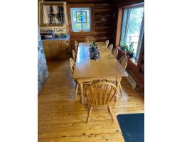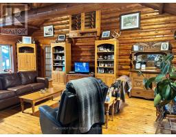 Stunning Log Home on Marten Lake! The Ultimate Northern Getaway. Welcome to your dream retreat on the crystal clear shores of Marten Lake. This beautifully crafted log home blends rustic charm with modern comfort and is the perfect setting for family escapes, entertaining, or a high demand Airbnb rental. The main log home features one spacious bedroom, beautiful stone wood fireplace and has been updated with all new appliances in 2025, offering modern convenience in a warm, rustic setting. Just steps away, a separate bunkie with six additional bedrooms provides exceptional guest accommodations and will be sold fully furnished, making it completely turn-key for rentals or extended family stays. A standout feature of this property is the impressive multi-bay garage, providing abundant storage for vehicles, ATVs, boats, and snowmobiles, plus extra space ideal for a greenhouse, workshop, or hobby area. Outside, you'll fall in love with the breathtaking lakefront setting. Enjoy peaceful mornings and golden sunsets from your private dock, complete with Adirondack chairs overlooking the water. After a day of exploring, unwind in your sauna and hot tub, the perfect way to relax in every season. With snowmobile trails nearby, this is a true four-season paradise: swim, boat, fish, hike, sled, and enjoy nature year round. Whether you're seeking a private family getaway, a retreat property, or a top tier short term rental investment, this Marten Lake gem offers unmatched charm, space, and lifestyle. (id:50886)