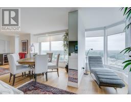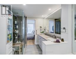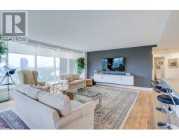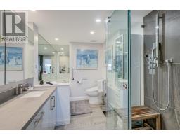 Welcome to Toronto's luxury landmark high rise, Palace Pier, located on the shore of Lake Ontario. Rarely available, this 1,890 sq.ft. three bedroom, two and a half bath residence is move in ready. Upon entering, to your right, the first or primary bedroom or bonus room, is spacious, and totally private from the rest of the suite. A three piece bath, with walk in shower completes this area. A separate wing, if you will. Proceeding down the hall into the principle living area, floor to ceiling windows frame the views of parkland, the Humber River, particularly beautiful in Autumn and partial view of the city skyline. The living and dining rooms size is accentuated by the open concept kitchen, oversized Caesarstone preparation island, surrounded by German manufactured, white acrylic cupboards and drawers, lots of them, and upscale gleaming Samsung and Bosch S/S/appliances. The kitchen counter has been extended to the dining area for additional storage, bar and wine fridge. The backsplash is unique. Punched stainless steel which compliments the white granite counter tops. Engineered floors of Honey Bleached Oak, easy to maintain, are throughout. The other "primary" ensuite, depending on which you choose, has been made into a mini spa with soaker tub, walk-in rain shower and Icera, toilet/bidet. The additional bedroom is bright and cozy adjacent to a two piece powder room. The full sized LG washer and dryer, have been removed from the kitchen and now tucked away in the hall giving easier access. All this along with grand lobbies and ***** Five Star Amenities: Concierge, 24 hr. security, Valet parking, Private Shuttle to City, Restaurant, Tennis court, BBQ's, Guest Suites, Full service spa, Sports simulator, Gourmet shop, State of the art gym and much more. (id:50886)