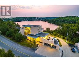 In a league of its own & located on the sought-after Ramsey Lake. In the heart of Sudbury next to HSN, biking/hiking & ski trails, Sudbury's Northern Watersports Centre and so much more. This 6,000 sq.ft.+ waterfront home incl's a beautiful mix of granite & maple hardwood floors without w stunning detail. 18' waterfall feature as you enter the home. Four levels (wheelchair accessible complete with an elevator & outdoor ramps). Glass curtain walls that let in all the gorgeous sunlight and California sliding doors that open all the way up lakeside bringing the outdoors in. Two temperature-controlled wine cellars (500 & 1500 bottle), family theatre room, vitality bar for smoothies and drinks, gym with changeroom and indoor heated pool all of which opens lakeside and leads to the outdoor shower, hot tub, relaxing sitting area, and stone fire pit which is next to a mind blowing out-door kitchen. Details to mention here are wood-burning pizza oven, grill, beverage fridge, full sink, icebox, prepping station and so so much more, plus enclosure for cool or winter months. Take the elevator or the outside ramps up to the 2nd level where you will find the heart of the home. This kitchen is incredible, with multiple islands & gorgeous granite countertops, chef-inspired built-in appliances etc. It is an open concept design on this flr. Details include a gas fireplace, custom built-in cabinets, shelves, walk-in pantry & captains dining table where you will catch the most incredible sunsets. Just off the dining area is the sunroom that opens up to the waterfront and to the 2nd outdoor kitchen. The primary suite is located on its own floor offering a private interlock terrace (sunsets), Office (incredible lake views), walk-in closet and ensuite. The home offers 6 bedrooms 6 baths. Sandy beaches, docking systems for multiple water toys & boats, a triple car garage, and a secret passageway. This is a must-see as there is so much more to experience. (id:50886)