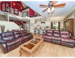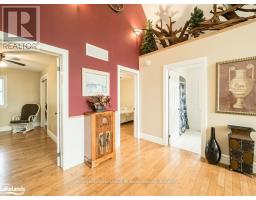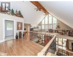 Offering a stunning custom-built home nestled on a private 2-acre country lot with a lovely view over a pond where the birds and wildlife like to visit. This home is large enough to share with an extended family or to host your overnight guests when they come to visit Muskoka. Enjoy the summer breeze as you relax on the huge wrap around veranda leading to a large, covered deck for dining and BBQ's. Upon entry, the home features an open concept floor plan with soaring cathedral ceilings. The primary bedroom is on the main floor with patio doors overlooking the backyard and pond leading to the back deck. There is a large main floor 4 pc. bathroom and a convenient laundry room. Upstairs is the loft with a wet bar and patio doors leading to two large balconies with beautiful views of the forest. Two additional bedrooms are also on the second level along with a 4 pc. bathroom. Gleaming red ash floors grace the principal rooms and upper level. Great potential for a 1400 sq. ft. family accomodations in the lower level, all with above grade windows to two walkouts to the backyard. A finished fourth bedroom and third 4 pc. bathroom along with an ample rec room and family room which could be finished off as a eat-in kitchen. The kitchen cabinets are not mounted but are included in the sale. There is a cute bunkie next to the house which could be used as a workshop studio or extra accommodations. All of this is only a short drive to town or a five-minute drive from the public beach on Prosect Lake where you can go for a quick dip or to launch the watercraft to go fishing. Enjoy the country lifestyle while working, living and playing in beautiful Muskoka! ** This is a linked property.** (id:50886)