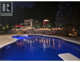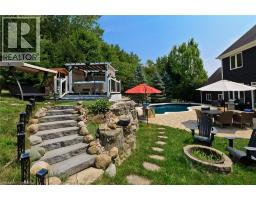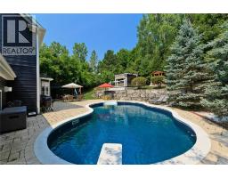 Set on a premium pie-shaped lot with mature trees, Back on to enormous green space and professional landscaping, this stunning 3-bedroom, 2-storey home is an entertainers dream. The gorgeous inground saltwater pool, brand-new liner, new pump, LED pool lights, backyard sauna, XL therapeutic hot tub with custom pergola, railing, and stone steps, plus a new deck and garden pergola, create an outdoor oasis. concret floors on backyard, grass LED lighting, and a private, resort-like atmosphere.From the charming covered front porch, step into a freshly painted interior (walls, ceilings, trim, doors, and baseboards), with bathrooms finished in Benjamin Moore Aura Spa. The kitchen has been updated professionally with cabinets and island , gold Italian hardware, and is illuminated by all-new pot lights, lamps, and fixtures. Smart-ready Caseta switches are installed throughout.The open-concept main floor features designer travertine tile and hardwood flooring, while a bonus family room above the garage offers the perfect retreat or 4th bedroom option. The fully built and upgraded laundry room supports two washers and two dryers. The garage now includes six new ceiling light panels.Upstairs, the primary suite boasts a walk-in closet, an upgraded 5-piece ensuite with an oversized glass shower with body jets, pot lighting, and a luxurious steam room. All bathrooms feature brand-new Kohler toilets.The finished basement offers direct garage access, a 3-piece bath, and a professional movie theatre with a 15.1 surround sound system and a massive 150 screen better than Cineplex.Major system upgrades include a new hybrid water tank, furnace, heat pump, attic insulation, smart thermostat, and Ring doorbell. Exterior updates include a full repaint and a new backyard sauna installation. Perfectly located just 10 minutes from Guelph or Acton, and 20 minutes from Milton/Highway 401 this home combines luxury upgrades, smart-home convenience, and resort-style outdoor living. (id:50886)