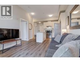 $478 MonthlyStep into upscale condo living with this stylish top-floor one-bedroom suite, offering 608 sq. ft. of bright, contemporary space. The kitchen makes an immediate impression with its stainless steel appliances, crisp white cabinetry, generous storage, and oversized island that doubles as the perfect spot for meals or conversation. The open living area invites natural light and extends to a private balcony with wide, unobstructed views. The bedroom provides a walk-in closet and a comfortable retreat, while 10-foot ceilings and modern laminate floors carry a sense of spacious sophistication throughout. The sought-after “Nickel” model, this floor plan stands out as one of the building’s best one-bedroom designs. Residents enjoy the benefit of on-site amenities including a fitness centre, yoga studio, party room, bicycle storage, and two rooftop terraces that showcase escarpment and sunset views. A parking space and locker are included, and the location couldn’t be more convenient—just minutes to the 407, 403, and QEW, and steps from shopping, transit, and the hospital. (id:50886)