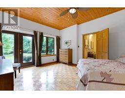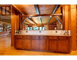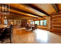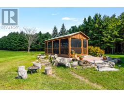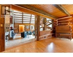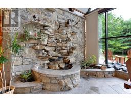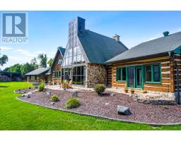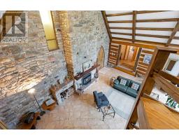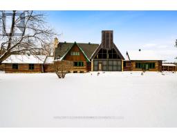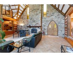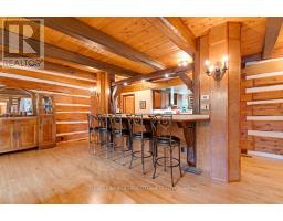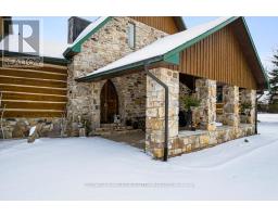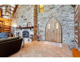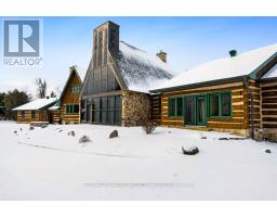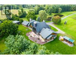 Exceptional waterfront home, unlike any other. Grand 3757sf stone and log home offers European flavours with 92 park-like acres on the Tay River. Gorgeous landscaped front yard with graceful fountain flowing into a pond. Circular driveway leads to showcase stone portico with amazing gothic solid wood door. Inside 4 bedroom, 5 bathroom Montebello-styled home are soaring timber beams, massive stonework and architectural details offering refined sophistication with enduring charm. Livingroom dramatic fan tracery ceiling and amazing stone wall with built-in stone fireplace that has woodstove insert. Solarium floor-to-ceiling glass wall, rock wall with decorative waterfall and glass door to flagstone patio terrace. Open dining room and kitchen, wrapping you in warm wood decor and tranquil views of the private outdoors. Welcoming well-designed kitchen has cherry cabinets and Butler pantry with breakfast bar. The family room, or bedroom, has 3-pc ensuite with second door to hallway. Main floor two more bedrooms, powder room and another powder room with laundry station. Big bright mudroom features wall of closets. Upstairs is relaxing library loft and the primary suite; walk-in closet plus 4-pc ensuite shower and jet tub. Lower level recreational room, wine cellar and storage room. The left wing of this home has radiant floor heating which includes the bedrooms, bathrooms and upstairs primary ensuite. Home has attached insulated double garage-workshop with log walls and radiant heated concrete floor. You also have driveshed, woodshed and garden shed. Enclosed gazebo for summer respite and gatherings. Endearing bunkie by the river is insulated; it also has hobbit-like front door, hydro, woodstove and softwood floors. Walking trails thru the woods. Enjoy summers of canoeing, kayaking and tubing on the river. Hi-speed and cell service. On township maintained road with mail delivery and school bus pickup. 15 mins to Perth. (id:50886)