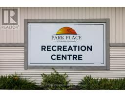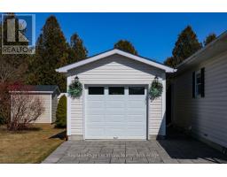 Amazing opportunity to own a fully detached home in Park Place, one of Wasaga Beach's premier adult/retirement land-lease communities. This beautifully maintained 2-bedroom home has a custom-built detached & insulated garage, backs onto complete privacy (a 400-acre tract of land owned by the Province of Ontario), and has a long, long list of interior and exterior upgrades and improvements (a list totalling well over $100,000 is available upon request). As soon as you step inside, you will immediately notice the amazing features that this top-quality home has to offer, from the open-concept design of the principal living areas to the fact that all of the flooring is top-quality hardwood & porcelain tile flooring and custom window treatments throughout. The gorgeous custom kitchen includes granite counters and 3 stainless-steel appliances and is open to the large, bright eating area. This area is also visible to/from the living room (with hardwood floors & vaulted ceilings).The primary bedroom has a double closet, and the 2nd bedroom has a large closet & sliding doors to the sundeck overlooking that beautifully landscaped and very private backyard. The house also offers a stackable washer/dryer for laundry convenience. Outdoor amenities include a stunningly beautiful interlocking brick driveway, walkways & rear patio, a covered front porch/veranda, a 10' x 12' sundeck (with awning), & a 10' x 10' shed. Park Place is a gated adult (age 55+) community on 115 acres of forest & fields, water & wilderness in Wasaga Beach. Numerous on-site amenities include a 12,000 sq. ft. recreation complex, indoor saltwater pool, games rooms, library, gym, woodworking shop, and more. This wonderful community is private yet is still ideally located within minutes from the beach, shopping, Marlwood Golf Course, an extensive trail system, and other amenities. Monthly fees to the new owner are as follows: Land Lease ($800.00) + Property Tax Site ($37.84) & Structure ($111.88) = $949.72/month (id:50886)