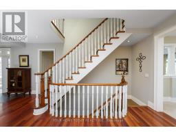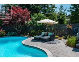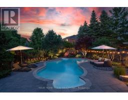 Double Oak excellence teamed with impeccable taste plus a gorgeous ravine lot with heated saltwater pool a win, win, win!! Nestled on one of the nicest & rarely available cul-de-sacs in town, this impressive 5-bdrm, 3.5-bthrm home offers over 5,000 sq. ft. of beautifully finished living space with attention to detail & superior quality throughout. A stylish stone portico, lovely landscaping & striking entry system set the stage for this exceptional home & property. The main level features a spacious layout with 9 ft. ceilings, tasteful flooring, crown, pot lights, U/G trim/window frames & more. Formal dining & living rooms are perfect for entertaining guests or sneaking off for some quiet time, while the kitchen & family room, the heart of the home, are nestled at the back O/L a magical setting! The kitchen & servery feature extended height shaker style cabinetry with crown detail, quartz counter & glass subway tile bcksplsh. An island with seating, SS appliances, breakfast area & W/O to the large glass paneled deck O/L a backyard oasis are sure to delight the chef in the house. The adjoining family room enjoys a toasty gas F/P & large view over the breathtaking yard. An office, powder room, laundry room & mud room complete the level. The upper level offers 5 spacious bdrms, one with W/O to balcony & all with ensuite access. The primary suite features an eye-catching feature wall, W/I closet & decadent 5-pc. An O/C basement adds to the enjoyment with a party-sized rec room, exercise area, office area & large workshop/utility room. A toasty gas f/p set on a shiplap feature wall, large A/G windows & W/O to the covered patio, pool & cabana add to the enjoyment. Wrapping up this extraordinary offering is the breathtaking ravine lot with stunning tiered gardens, pool, extensive patio area, huge deck & cedar-lined cabana. Great location for commuters. Steps to the amazing Hungry Hollow trail & close to rec centre, schools, parks, shops & more. (id:50886)