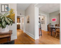 Discover timeless elegance in this stunning century home, where historic charm meets modern-day comfort. Built over 100 years ago, this architectural gem is a testament to craftsmanship and detail, featuring the builders original stain glass window trademark, intricate moldings and soaring ceilings that harken back to a more graceful era. The spacious foyer welcomes you with rich wood accents and a grand staircase that is truly a centerpiece. The formal living room boasts large windows that bathe the space in natural light and sliding glass doors leading to a private wood deck that overlooks the beautifully landscaped backyard. Adjacent to the living room is a charming formal dining room, ideal for hosting dinner parties or intimate family meals, complete with an electric fireplace, antique wood mantel and vintage light fixtures that add to the home's unique allure. The updated kitchen offers the best of both worlds, blending period details like an antique icebox, converted hutch and custom cabinetry with modern appliances, stone countertops, and plenty of storage. It's a chef's delight, with a central island perfect for meal prep or casual dining. Just off the kitchen, is a mudroom, laundry area and half bathroom with a vintage, sliding pocket door. The second-floor features 4 bedrooms, each with its own distinct personality, highlighted by large windows, a mostly finished attic/loft above the second bedroom, an office/den and 4 piece bathroom that has been tastefully updated. Outside, the lush and private backyard offers a peaceful retreat with mature trees, gardens, and wood deck perfect for outdoor dining and entertaining. For additional storage the home offers an attached shed. Located in a sought-after neighborhood known for its proximity to Kempenfelt Bay, Go Train, transit, local shops, restaurants, and parks, this home offers a rare opportunity to own a piece of history while enjoying all the conveniences of modern living. (id:50886)