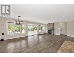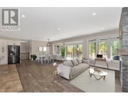 Elegant Estate Bungalow on Quiet Cul-de-Sac - Welcome to this beautifully appointed 3+2 bedroom estate-style bungalow, nestled on a peaceful cul-de-sac perfect for families seeking comfort, space, and sophistication. Main Level Highlights. Step into an open-concept living area anchored by a dramatic floor-to-ceiling fireplace, ideal for cozy evenings or hosting memorable gatherings. Rich hardwood and tile flooring flow throughout, leading to a covered porch that overlooks the serene backyard. The chef-inspired kitchen features gleaming quartz countertops, a striking island with breakfast bar, under-cabinet lighting, and abundant cabinetry for effortless organization. The spacious primary suite offers sliding doors to the porch, a luxurious 5-piece ensuite, and a generous walk-in closet. Two additional bedrooms share a stylish Jack-and-Jill 5-piece bathroom, perfect for kids or guests. A thoughtfully designed main-floor laundry room includes a sink, counters, and cabinetry for added convenience. Lower Level Comfort - The finished basement expands your living space with two more bedrooms, a full 4-piece bath, and a sprawling recreation/family room, ideal for extended family, guests, or a home theatre setup. Garage Goals - Car enthusiasts and hobbyists will love the oversized 4-car garage, complete with a loft and ample storage space. This listing consists of two separate parcels of land, PIN 043151258 and PIN 043151268, being sold together as one offering, with a combined total of 2.593 acres. Some photos virtually staged. (id:50886)