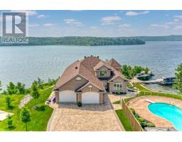 Welcome to the Tranquil Shores of Ramsey Lake at 2507 Navanod Road Nestled on just under an acre with 297 feet of pristine lake frontage, this stunning property offers the perfect blend of luxury, privacy, and natural beauty. Situated on a beautifully landscaped yard with a sandy beach, it's an ideal place to enjoy breathtaking sunsets or sunrises and peaceful lakeside living. This oversized bungalow boasts 3+2 bedrooms and 3 full bathrooms, including a fully finished walk-out basement with 10-foot ceilings. Whether you're hosting family or entertaining guests, this home offers plenty of space for everyone. Step inside to a freshly painted interior featuring an open-concept kitchen with upgraded granite countertops throughout, abundant cupboard space, and brand-new stainless steel appliances. The layout flows beautifully into the living and dining areas, creating an inviting and spacious feel. The primary suite features a luxurious ensuite with an ambiance fire place and walk-in closet. Relax in your private outdoor oasis, complete with a heated in-ground pool, a hot tub with full roof, a large walk out deck, and an interlocked patio - perfect for enjoying evening fires by the lake. Additional highlights include: -Oversized double car garage with direct entry into the home -Main-floor laundry room -Two gas fireplaces and one electric in ensuite -A lower-level wet bar rough-in -Full 4-piece bathroom in the lower level -Stunning landscaping with Manitoulin stone -Extensive interlock driveway with ample parking This is a rare opportunity to own a turnkey lakeside retreat that combines modern comfort with year-round enjoyment. Whether it's your forever home or a private getaway, 2507 Navando Road delivers the lifestyle you've been dreaming of. Don't miss your only chance to own this one-of-a-kind home on one of Sudbury's most sought after lakes. For more details, see the listing documents or contact us today to book your private showing. (id:50886)