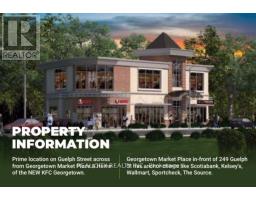 Multiple commercial units available in a newer plaza located on Guelph Street, directly across from Georgetown Market Place. High-visibility location surrounded by major retailers including Walmart, Homesense, CIBC, BMO, Scotiabank, and several established plaza tenants such as KFC, Fat Bastard, Beauty Supply Outlet, and wellness services. Units range from 180 to 10,000 sq ft with various layout options. Features include finished interiors with chevron flooring, neutral decor, private washrooms, kitchenettes, rooftop HVAC, electrical service, elevator access, and terrace availability depending on the unit. Suitable for a variety of uses including retail, personal services, professional office, wellness services, and creative studios. Large windows provide strong natural light. Approximately 3,000 sq ft of space is available with an optional 4,400 sq ft basement area offering storage, elevator access, and a washroom. Contact for unit sizes, configurations, and pricing. (id:50886)