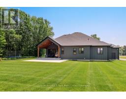 Custom-Built Brick & Board-and-Batten Bungalow on a Scenic Country Lot. Discover the perfect blend of luxury and comfort in this stunning custom-built bungalow offering over 2,000 sq. ft. of beautiful main floor finished living space. Set on a picturesque lot just minutes east of Delhi, this meticulously designed home features high-end finishes throughout and incredible attention to detail. Step inside to a bright and airy open-concept layout, anchored by a custom kitchen with quartz counter tops, premium cabinetry, and a spacious walnut island ideal for both everyday living and entertaining. The expansive dining area flows seamlessly to a covered rear porch, where you'll enjoy serene views of surrounding woods and open fields. This thoughtfully designed main floor includes three generous bedrooms, including a luxurious primary suite complete with a massive 5-piece ensuite bath and walk-in closet. Convenient main floor laundry with built-in storage wall adds everyday ease. The fully finished lower level offers even more space with approximately 1500 sq. ft. including a large recreation, two additional bedrooms, and a shared 4-piece bath perfect for guests, teens, or extended family. A massive room is partially finished and is ideal for a children's play room, office or home gym. Outside, the beautifully landscaped grounds feature a paved driveway leading to a 3-car attached garage, providing plenty of space for vehicles, hobbies, and storage. With quality craftsmanship throughout and an unbeatable location offering peace, privacy, and easy access to town amenities, this home truly has it all. (id:50886)