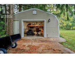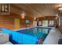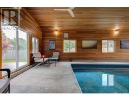 Tucked away on a quiet cul-de-sac, this 3+1 bedroom, 3 bath ranch bungalow offers the perfect blend of space, comfort and privacy on 1.88 acres backing onto Black Creek. Inside you will love the bright eat in kitchen, spacious living room and convenient cheater ensuite. The fully finished basement adds incredible versatility with a large bedroom with a double closet, a cozy family room, media room, butlers pantry, additional 4 piece bath and laundry.This property is designed for entertaining. Enjoy year round swimming in the indoor pool, gather on the back deck or concrete patio and take in the peaceful private backyard.There is an attached 2 car garage with a 2 piece bath, a double car Quonset garage and 2 more storage sheds providing room for vehicles, hobbies and storage. All of this in a welcoming, family friendly neighborhood, with an invisible dog fence for your pets. Come and experience the lifestyle you have been dreaming of. Call your realtor today for a private showing. (id:50886)