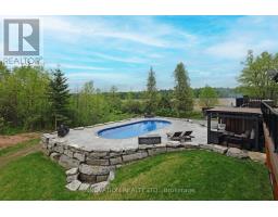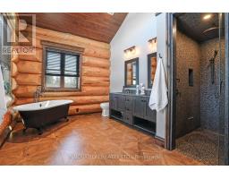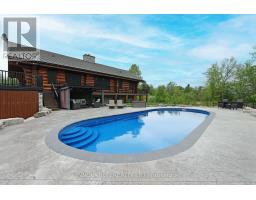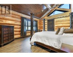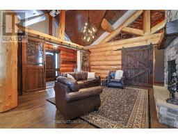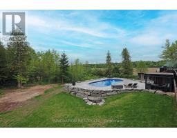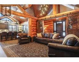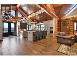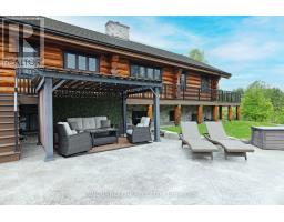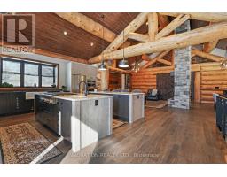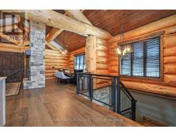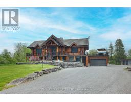 Whistler comes to the Ottawa Valley! Truly one of a kind custom log home with materials sourced from the West of Canada. Massive logs, posts and beams speak to the rarity in this area. Unique custom wood and wrought iron front door gives a hint as to what is inside. Warm entry Foyer can be closed off with custom barn doors featuring wrought iron design insert. Spacious open concept living space with high vaulted ceilings throughout main level. Chic interior is modern yet not cold. Inviting Living Room with gas fireplace surrounded by stone facade is steps away from the Dining Room which overlooks the backyard. Kitchen cabinetry is very high end and well laid out. Two islands for easy entertaining. Built in appliances. Feature stone accent nook tucks the sink away. Pantry. Unique wood interior doors sourced from the US. Primary bedroom located privately on the main level has transom windows in the peak for additional natural light. Beautiful finishings in the Ensuite. Lower Level offers two additional Bedrooms, one with built in bunk beds - how fun would that sleepover be? Full bath & laundry on this level. Home Theatre Room is central to the lower level - components included. Large home gym with glass walls to capitalize on the light. Inground salt water heated pool is set in the private backyard of this 2 acre property. Rooftop deck over garage offers a hot tub. 1km away from the Ottawa River, private community beach and boat launch. Efficient outdoor wood furnace fuels a hot water system to heat both forced air and radiant systems, including the garage floor. No expense was spared on this magnificent structure. 24 hour irrevocable on all offers as per form 244 (id:50886)