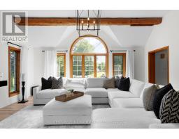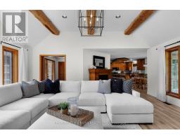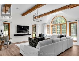 Introducing 256 Denney Drive, a beautifully crafted residence nestled on a nearly 2 acre private, professionally landscaped lot in one of Essa's most desirable neighborhoods. This exquisite property offers the perfect blend of elegance, space, and tranquility, making it a true sanctuary just minutes from Barrie, Angus, and Alliston. Spanning over 3,500 sq. ft. of finished living space, this stunning home features 4+1 bedrooms and 4 bathrooms, thoughtfully designed to accommodate both family living and stylish entertaining. As you arrive, a generous driveway welcomes you, leading to an oversized garage -- ideal for vehicles, storage, and workshop needs. Mature trees and lush landscaping frame the home, offering both privacy and striking curb appeal. Step inside to discover a residence where pride of ownership is immediately evident. The timeless color palette, paired with custom finishes throughout, sets a warm and inviting tone. The gourmet kitchen boasts elegant cabinetry, a charming bay window, and direct access to an expansive patio -- perfect for hosting gatherings or enjoying serene morning coffees. The living room is truly the heart of the home, featuring soaring 12' ceilings, exposed natural wood beams, and a stunning chandelier surrounded by large windows that flood the space with natural light. Downstairs, a fully finished basement expands your living potential, offering a large rec room, additional bedroom, and ample space to customize to your needs -- whether its a home gym, office, or media room. Step outside and unwind in your private backyard oasis, complete with a beautiful inground pool, surrounded by mature landscaping that creates a resort-like atmosphere all summer long. 256 Denney Drive is more than a home -- its a lifestyle. If you're seeking space, privacy, and understated luxury in a prime location, this property is a must-see. Don't miss this exceptional opportunity to own a truly one-of-a-kind home in Essa. (id:50886)