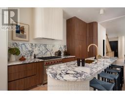 Historic Charm Meets Modern Mastery & flawless design in this 1900s home reimagined, Professionally designed & complete with a newly added third storey that turns everyday living into elevated luxury. Main Floor - Step inside to soaring 12-foot ceilings, a massive arched window flooding the home with light, and herringbone hardwood floors that set a timeless tone.A designer powder room with a floating toilet and imported custom marble vanity makes even the small details shine.The chef's kitchen blends soft architectural curves with bold masculinity - Wolf gas range, European appliances, and a marble countertop that demands attention.A custom-built family room anchors the back of the home, leading seamlessly to the deck and professionally landscaped yard. Second Floor - Space & Sophistication w Three generous bedrooms, each with custom built-in storage.The second bedroom features three stunning arched windows - an architectural nod to the home's heritage.The spa-like 5-piece bathroom feels lifted from a boutique hotel, while a style-forward laundry room adds functional flair. Third Floor - Private Primary Retreat with A full-floor sanctuary designed for serenity: his-and-her walk-through closets, built-in media and vanity desk & sitting area and a 5-piece designer ensuite with luxurious finishes.Walk out to a large private terrace with clear skyline views - the perfect escape for morning coffee or evening wine. Lower Level - Bonus Living in Finished basement with a rec room and 5th bedroom featuring a 3-piece ensuite - ideal for guests, nanny suite, or home office.Exterior Brick home with timeless curb appealand no stucco to be found. High-end Nuewal siding & Professionally landscaping front and back, Two-car laneway parking with custom garage door. Location - The Best of the Best Nestled in one of the city's most coveted pockets - steps to the subway, TTC, Yorkville, U of T, and Toronto's top shops, restaurants, and cafes. (id:50886)
