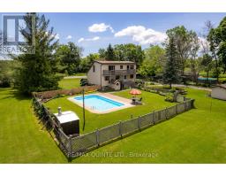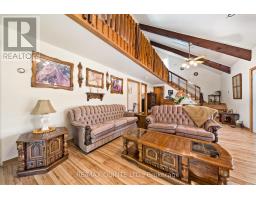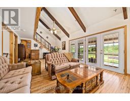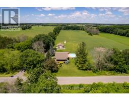 This custom built home has been loved and cared for and it shows from the beautiful landscaped yard, gardens and inground pool to the solid bones of a well built, unique home. Main floor offers kitchen and dining area that leads into a huge living room with 2 storey ceilings, hardwood floors and gorgeous real wood exposed beams. Second floor is an open hall looking down into the living area with the primary bedroom, bath and another large bedroom. Both bedrooms have a walkout to a 2nd storey balcony with pastoral views of your 11+ acres. Walk out basement is finished as a recroom with an additional space for laundry/utility. Your paved driveway leads to the huge detached garage and an in-law suite at the back with tons of income potential! 11+ acres with 400' of road frontage. Possible severance. (id:50886)