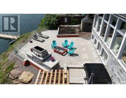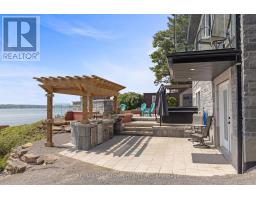 Stunning Stone Home on the River Built in 2021 - Welcome to your private riverside oasis. This all-stone 1700+ sq ft home, built in 2021, features a double attached garage with inside access, but that's just the beginning. Step through the bold blue front door into a show-stopping interior flooded with natural light and panoramic river views. Hardwood floors add warmth and elegance to the main living and dining areas, as well as the two west wing bedrooms, enhancing the home's clean, modern feel. The spacious open-concept layout connects a large living room, dining area, and a chef-worthy kitchen with ample cupboard and counter space, ideal for everyday living and entertaining, and all appliances are included. Convenient main floor laundry is just off the garage entrance - perfect for unloading groceries. Two bedrooms and a 3-piece bath are located on the west side, while the east wing features a private primary suite with a walk-out balcony, large his and hers closets, and a 4-piece ensuite that includes a soaker tub. Downstairs, the fully finished walk-out lower level offers endless possibilities: create a family room, games room, or easily convert the space into an in-law suite. You'll also find a bright office or exercise room, a 2-piece bath, a utility room, and two spacious storage rooms. Step out from the lower level to a custom-built outdoor BBQ station complete with a sink and wine fridge, perfect for year-round entertaining. Just a few steps away, unwind in a beautifully designed outdoor space featuring a hot tub, fireplace, and sitting area, all with uninterrupted views of the stunning St. Lawrence River in every season. And there's more: head down to the water's edge to find a 45' x 10' Kehoe dock with a 7,000 lb boat lift with remote. Whether you're into fishing or cruising, this setup is a dream for any boater. This is more than a home; it's a lifestyle. Book your showing today. (id:50886)