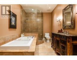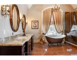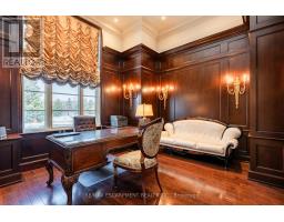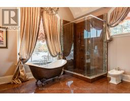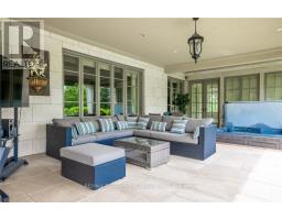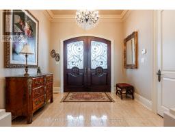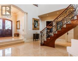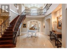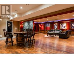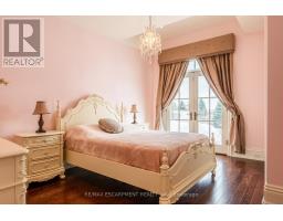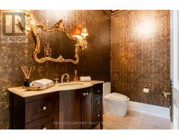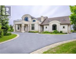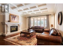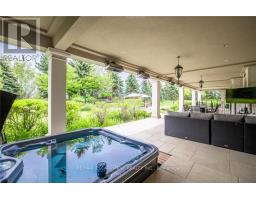 Impeccably nestled in The Bluffs, this extraordinary estate spans over 11,000 sqft. of luxurious living space on approx two acres of treed property. Blending modern sophistication with traditional elegance, this home offers an unparalleled lifestyle in a breathtaking setting. From the moment you step into the grand foyer, the impeccable craftsmanship and seamless flow set the tone for refined living. Architectural excellence is showcased through soaring coffered ceilings, expansive windows, & an intricate wrought-iron staircase. The chefs kitchen is a culinary masterpiece, boasting a walk-in pantry, top-tier custom cabinetry, & premium appliances. A spacious breakfast room opens to the beautifully landscaped backyard, where a heated covered lanai provides the perfect setting for outdoor relaxation. The main-floor primary suite is a private retreat, featuring a cozy F/P, his and her walk-in closets, & a lavish 6pc spa-inspired ensuite. Adding to its allure, an adjoining sunroom offers direct access to the backyard, creating a seamless indoor-outdoor experience. A richly appointed home office, complete with wood paneling & built-in cabinetry, provides an ideal workspace. The second level hosts 3 additional bedrooms, while the lower level is designed for ultimate comfort, entertainment, & hosting unforgettable events. Here, youll find a full bar, oversized wine cellar, & a dance floor, along with a state-of-the-art home theatre, a gym, a gentlemans cigar room, & a spa-inspired bath with a stone steam sauna, walk-in shower, & radiant floor heating. A 5th bedroom completes this level, offering flexibility for guests or extended family. For car enthusiasts, the impressive heated 3-car garage is outfitted with 2 lifts, allowing for up to 6 vehicles to be stored with ease. Built-in speakers throughout the home further enhance the ambiance, providing a seamless audio experience indoors & out. Minutes from major highways & Burlingtons finest amenities. LUXURY CERTIFIED (id:50886)