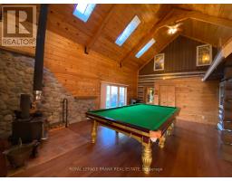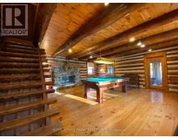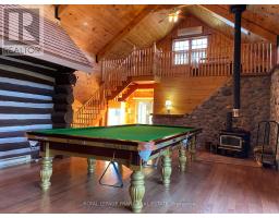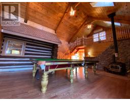 A truly remarkable, handcrafted log home that feels like a luxurious waterfront lodge straight from a movie set! Nestled on just over 2 private acres, this pine-beamed masterpiece features massive log construction, 4 spacious bedrooms, and 3 bathrooms. Unique architectural touches include three staircases and two loft spaces that overlook the expansive kitchen/dining area and the stunning Great Room below. The breathtaking vaulted ceilings soar to 20 feet, enhanced by skylights that flood the space with natural light. This four-season sanctuary also offers a striking stone fireplace, two additional woodstove hookups, beautiful pine plank flooring, and a fully finished basement. With 700 feet of water frontage along the Skootamatta River wrapping around the property, you'll enjoy panoramic views and exceptional privacy. Relax in the fully enclosed sunroom overlooking the inground pool, or take advantage of the detached four-car garage in the process of being re-shingled. An added bonus? A separate 800 sq.ft. living space with open-concept layout, kitchen, laundry, and bathroom, all finished in warm pine and wood tones, ideal for guests, in-law suite, or short term accommodations. Immediate possession available. (id:50886)
