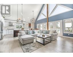 Escape to the waterfront in Kawartha Lakes! This stunning 4-season custom home offers 2,700+ sq ft of beautifully designed living space on the peaceful shores of Lake Scugog, part of the scenic Trent-Severn Waterway. Perfect for families, retirees, investors, or anyone dreaming of a relaxed lakeside lifestyle with year-round recreation just outside your door. From the moment you enter, you're greeted by soaring vaulted ceilings, expansive floor-to-ceiling windows, and engineered hardwood flooring that flows throughout the main living areas. The open-concept great room impresses with exposed beams, a cozy propane fireplace, and a walkout to a spacious cedar deck overlooking the water, ideal for entertaining or quiet morning coffee. The chef-inspired kitchen blends style and function with granite countertops, a large island, built-in appliances, a beverage & wine fridge, designer lighting, and custom wainscoting. Every detail has been thoughtfully curated for comfort and elegance. The main level includes two large bedrooms with double closets and ceiling fans, while the lofted primary suite offers a private sanctuary with panoramic lake views, vaulted ceilings, a sitting area, and a luxurious ensuite with a glass shower and soaker tub. Downstairs, the walkout basement is fully finished and perfect for guests or multi-generational living. It features a spacious rec room with a bold 3D mural accent wall, a kitchenette with island, crown moulding, pot lights, a 4th bedroom, a 3-pc bath, and direct access to the stone patio and landscaped lakeside yard. Located just a short walk to Sand Bar Beach and public boat launch, and only minutes to Port Perry and Lindsay for shopping, restaurants, and hospitals. Enjoy boating, swimming, skating, snowmobiling, and fishing right at your doorstep. Only 1.5 hours to Toronto!A rare blend of luxury, comfort, and natural beauty. Don't miss this one! (id:50886)