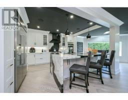 Waltz into your dream home! Nestled in the North end of Brampton (Stonegate) this fully renovated 2-story home is a masterclass in contemporary comfort & timeless elegance. Situated on an ultra-private ravine lot w/no neighbors behind & views of nothing but nature & a beautiful pond, this home & property is the perfect blend of serenity, style & functionality. Offering a turn-key lifestyle. Surrounded by lush foliage, perennial/mature trees that provide natural shade, the lg backyard cant be beat. Enjoy a cozy evening on the 2tier composite deck or soak in the hot tub. As you step through the new front door, you're immediately greeted by a beautiful open staircase w/iron railings & a view right to the back of the house. To the right is a functional office w/built-in cabinet, fireplace, coffered ceiling & accent wall. To the left is a tiled mudroom, w/heated floors & a 2 pc bath. New engineered hdwd floors run throughout the main floor & upper level. Every inch of this home has high end finishes. Chefs dream kitchen boasts oversized island w/quartz counters & sink, subway tile backsplash, top of the line Kitchen-aid SS appliances gas range & b/I oven/microwave combo for all your cooking needs. Sep pantry area. Eat-in dining rm w/ample space for entertaining & attaches to the sunroom area w/3 lg windows & w/o to deck. Family rm is a perfect place to watch TV & the coffered ceiling is next to none. Upstairs, you'll find 4 generously sized bdrms, each offering ample closet space, new flooring/crown molding/custom trim work. Renovated 4 pc main bath, updated w/new vanity, quartz countertop, tub/shower combo. Renovated 3 pc main bath w/new vanity, quartz countertop, & laundry. Primary bdrm w/dream closet, w/island in the middle, custom built-ins & renovated ensuite w/dbl sinks, quartz counters, modern hardware/fixtures & w/i glass shower & soaker tub. Lower-level features 2nd wood fireplace, lg windows & gym rm, 3 pc bath with w/i shower. Seeing it believing! (id:50886)