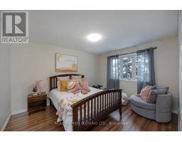 Bright and spacious home in a convenient Whitby location. The main floor offers a combined living/dining room with a large bay window, a family room with hardwood floors and a dedicated main floor office. The eat-in kitchen features tile flooring, laminate countertops, a tile backsplash, a window over the sink, walk-in pantry, plenty of cupboard space, and a walk-out to the back deck. Main floor laundry provides added convenience with walk-outs to both the side yard and the garage. Upstairs boasts four bedrooms. The primary bedroom includes his-and-her closets, broadloom flooring, and a 4-pc ensuite. The second bedroom offers a double closet and laminate floors, while the third and fourth bedrooms each include a single closet and laminate flooring. The basement adds excellent versatility with a large rec room, storage area with above grade windows, two additional bedrooms with closets, pot lights, laminate floors and above grade windows, plus a separate exercise room. A 3-pc bathroom completes the lower level. The fully fenced backyard features a wood deck. The front of the home includes a covered porch and interlock walkway. Located close to shopping plazas, schools, and parks. Ideal for families seeking space and functionality in a great neighbourhood. (id:50886)