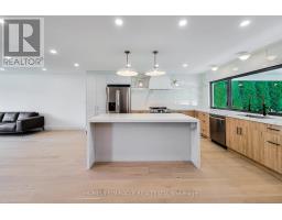 This immaculate 3-bedroom, 2-bath bungalow has been completely renovated, offering 1,255 sq. ft. of modern, carpet-free living. The open-concept main floor features bright, spacious living and dining areas with gleaming hardwood floors and oversized windows that fill the space with natural light. The stylish eat-in kitchen is perfect for any home chef, featuring stainless steel appliances, a tiled backsplash, generous cabinetry, and an island with a breakfast bar for casual dining. The contemporary 3-piece main bathroom showcases elegant finishes, while the primary suite includes custom built-in wardrobes and a spa-inspired 3-piece ensuite with a walk-in shower. The full, unfinished basement provides endless potential whether for additional living space or an in-law suite with a separate entrance already in place. Step outside to enjoy the private, covered concrete patio and low-maintenance backyard, perfect for relaxing or entertaining. Situated in a quiet, family-friendly neighborhood, this home is within walking distance to schools, parks, and the GO Station, with quick access to the mountain and QEW. With 200 amp service and exceptional upgrades throughout, this home is truly move-in ready a must-see! (id:50886)