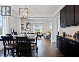 Stunning custom-built detached home, no side neighbours on one side, with 4 bedrooms, 3 ½ bathrooms, a main-floor office, and a 2-car garage with parking for 6. The main floor boasts 9 ft ceilings, modern light fixtures, and an open-concept design. The kitchen is a chef’s dream with a custom oversized island featuring a built-in bar fridge, quartz counters and backsplash, a farmhouse sink, gas range, and a built-in oven and microwave. The dining room includes a custom bar with thoughtfully designed storage for bottles, while the living room showcases a gas fireplace with custom shelving and cabinetry. A private main-floor office with built-ins, a powder room, and a spacious front entry complete this level. Upstairs, you’ll find 4 large bedrooms and 3 bathrooms. The primary suite offers a stunning 5-piece ensuite with dual sinks, soaker tub, glass shower, and a walk-in closet. The second bedroom has its own 4-piece ensuite and walk-in closet, while the third and fourth bedrooms share a Jack and Jill bathroom. The upper-level laundry room is finished with a sink and extra built-in storage. The unfinished basement features big windows, a bathroom rough-in, and endless potential for a rec room, in-law suite, or additional living space. Step outside to your backyard oasis designed for entertaining. The Douglas fir and stone patio is complete with built-in deep fryers, BBQ, granite countertops, and even a retractable projector and screen. Located in the charming village of Ayr, this home combines the peace of country life with the easy access to the 401 and nearby cities including Kitchener, Cambridge, and Paris. (id:50886)