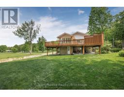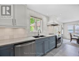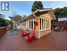 Welcome to your dream retreat by the bay, where panoramic water views, serene sunsets, and refined living come together in one of Penetang's most sought-after neighbourhoods. This beautifully maintained 4-bedroom, 3-bathroom all-brick bungalow offers an ideal blend of comfort, elegance, and functionality, perfectly positioned on a quiet, low-traffic street. Step inside to a bright, open-concept main floor featuring vaulted ceilings, a cozy wood-burning fireplace, formal dining area, sunroom, and a stunning new Lindsay Schultz kitchen ideal for entertaining or simply soaking in the views. The main floor primary suite is a private escape with its own en-suite and walk-in closet. Downstairs, the fully finished lower level boasts a spacious family room with a new Napoleon gas fireplace, additional bedrooms, an office, and two walkouts to the beautifully landscaped backyard. Thoughtful updates include new shingles (2025), a new gas hot water heater (2025), updated flooring, and modern light fixtures throughout. Enjoy the outdoors with a wrap-around deck, covered lower patio, and direct access to open green space and the bay, perfect for launching your kayak, paddleboard, or simply enjoying a peaceful walk through the park. Just minutes to town, marinas, shops, restaurants, trails, and Discovery Harbour. This is a rare opportunity to embrace waterfront-adjacent living in a truly exceptional location. (id:50886)