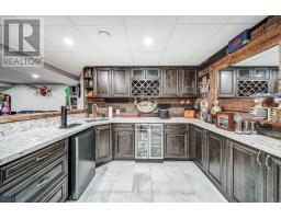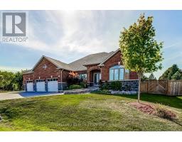 Exceptional 2200 SF stone and brick executive bungalow on 0.69 Acre Pool-Sized Lot w/permit ability on sought after street in desired neighbourhood! Soaring 9ft smooth ceilings! 'Open concept' floor plan! Hardwood plank floors! Separate living and dining rooms with servery. Gourmet kitchen with granite counters and quality stainless steel appliances - task lighting - breakfast bar - extended cabinetry - tealites - stainless steel chimney exhaust - custom backsplash - and bright family sized breakfast area with walkout to 1000 SF deck! 'Open concept' family room with cosy gas fireplace, kneewall and 2 bright picture windows! Inviting primary bedroom with walkin closet and enticing 5pc ensuite with oversized glass shower and step up soaker tub! Big secondary bedrooms too! Professionally finished open concept lower level with huge rec room - games room combination. Custom wet bar with live edge! 4th bedroom, den, gym room and 3pc bath and loads of finished storage in lower level! 1000 SF deck and 400 SF outbuilding with power and water too! Fibe High Speed Internet Available. See Feature Sheet for Extras and Upgrades! (id:50886)