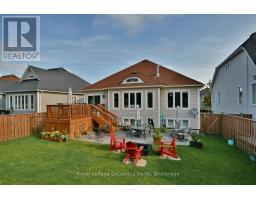 Bluewater on the Bay! This charming 4 bed, 3 bath bungalow is just off Beachwood Rd on the edge of Collingwood. Enjoy your water view from your landscaped front patio! This open concept kitchen, dining & living room overlooking a fully fenced backyard with firepit, makes entertaining easy! The kitchen features granite counters, stainless steel appliances, tiled back-splash & undermount lighting. The Great room has hardwood floors, pot lights, gas fireplace & walk-out to a recently enlarged back deck w/ storage below. What else can you ask for, except: a main floor primary bed with a 4pc ensuite & walk-in closet, a second bath with a walk-in therapeutic spa tub, a finished lower level with a large family room, two beds & another full bath! The neighborhood is a wonderful area where you can enjoy overlooking Georgian Bay from the clubhouse, featuring a saltwater pool, exercise room, sauna & a party room. Snow ploughing & grass cutting are included in a small monthly fee of $306. Recently installed was the Generac generator, large enough to run the entire home. The garage has been updated with insulated rubber floors, spray foamed, drywalled, climate controlled and insulated garage storm doors (id:50886)