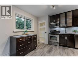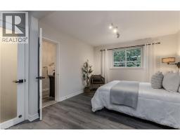 Welcome to this beautifully updated bungalow in one of Burlington’s sought-after family-friendly neighbourhoods, just minutes from the lake, Burloak Waterfront Park, schools, and trails. Fresh curb appeal with coordinated professional painting of house and garage exterior (2025), smart app-controlled soffit lighting, a paved four-car driveway w/ no sidewalk, and a large 17’ x 23’ 1.5-car detached garage w/ new 50A panel (2025), hydraulic compressor system, loft storage, and excellent workshop/hobby potential. Inside, the home feels bright, modern, and move-in ready. The main level features new flooring and lighting (2025), a light-filled living and dining area, and an updated kitchen w/ stainless steel appliances and timeless tile backsplash. The spacious primary bedroom offers extensive closet space and ensuite privilege to the refreshed 4pc bath, w/ a second bedroom completing this level. The fully finished lower level (2024/2025) is ideal for multi-generational living, guests, or teens, w/ separate ground-level rear entrance, soundproofed ceilings, all new wiring, three wired smoke detectors, generous recreation space, new full-size egress windows, a wet bar that can be upgraded to a full kitchen, 3pc bath w/ walk-in shower, guest suite, laundry, and storage. Extensive upgrades provide comfort and peace of mind: full exterior foundation waterproofing w/ Delta membrane, 75% interior waterproofing tied to the sump pump, transferable 25-year waterproofing warranty, upgraded attic insulation to R60, and a new energy-efficient heat pump HVAC system. Outside, enjoy the large fully fenced 80’ x 100’ lot, mature trees, shed, and newly renovated tiered wood deck (2025). A beautifully updated home that blends style, comfort, and flexibility in a prime Burlington location. (id:50886)