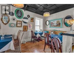 Feast your eyes on this truly stunning stone Heritage building nestled in the Heart of Cumberland Village. Referred to as "The Doctor's House" in the late 19th century, this one of a kind property has been host to various businesses over the years and is currently FULLY EQUIPPED for a fine dining restaurant. While keeping with the historical charm, this 3 storey building has been recently upgraded throughout. The Main level offers a Fully equipped restaurant kitchen, beautiful Dining room and access to the renovated lower level His & Hers washrooms. Venture up the stairs passed the antique chandelier to the 2nd floor with a Full Bar, adjacent dining room and access to the wrap around balcony and HUGE ROOFTOP PATIO! On the third level are 2 washrooms, an office and three additional smaller rooms. (id:50886)