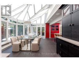 A Bold Statement In Design And Personality, This One-Of-A-Kind Art Deco-Inspired Home Is A Celebration Of Creativity, Quality, And Individuality. With Premium Finishes And Enduring Materials Throughout, This Residence Blends Luxury With Architectural Craftsmanship. The Exterior Features A 50-Year Metal Roof, Custom Concrete Driveway With Grass Inserts, Cedar And IPE Wood Facade, And Cedar-Lined Porch Ceiling. The Private Backyard Is Professionally Landscaped With Mature Trees, Perennial Gardens, Four Varieties Of Fruit Trees, Putting Green, Solarium (Updated With High-Efficiency Windows In 2019), Natural Gas BBQ Hookup, And Custom Garden Structures. Inside, The Heart Of The Home Is The Chefs Kitchen Which Impresses With 12 Built-In Miele Appliances, A 14-Ft Caesarstone Island, Custom Cabinetry, 3 Sinks, KOHLER Faucets, Pot Filler, In-Floor Heating, And Italian Tile. The Family Room Includes A Gas Fireplace And Surround Sound. The Foyer Welcomes With Granite Floors, A Glass/Stainless-Steel Staircase With Sapele Treads And Imported Designer Lighting. Formal Living And Dining Rooms Feature Crown Molding, Custom Glass Pocket Doors, And A Stainless-Steel Fireplace. Upstairs, 5 Bedrooms Offer Bamboo Floors And Custom Lighting. The Primary Suite Has Mirrored Closets And A Bright Ensuite With Jacuzzi And Separate Shower. The Walk-Out Lower Level Offers A Private Entrance, Steam Shower, Rec Room, Home Office, And In-Law Suite Potential. Walk To Top Schools (Including Appleby College And French Immersion), Transit, Downtown, And The GO. A Rare Offering That Seamlessly Blends Design, Lifestyle, And Location - This Home Is Truly One To Experience. (id:50886)