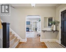 Full of character & charm, this home sits on a picturesque, tree-lined street in coveted Roseland - just steps to the Lake, Downtown Burlington & Roseland Tennis Club. Set on a 62'X120' lot within top-rated school districts, it offers timeless appeal & a highly desirable location. Leaded glass windows, crown mouldings, hardwood floors & a wood-burning fireplace bring warmth & classic elegance throughout. The bright living room is filled with natural light from a large picture window, complemented by a separate dining room & an upgraded kitchen with modern finishes. A sunroom wrapped in windows with walkout access to the backyard provides an ideal home office or cozy retreat. The primary bedroom offers a peaceful escape, joined by two additional well-sized bedrooms. The finished basement with a separate entrance adds versatile living space & a renovated full bathroom. Outside, a private backyard with a stone patio, mature trees & lush gardens creates a serene setting for entertaining. A rare opportunity to own a home with true character in one of Burlington's most sought-after neighbourhoods. (id:50886)