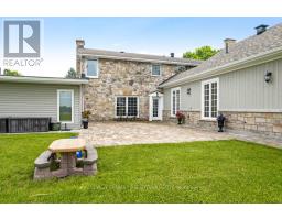 Exceptional exquisite estate with elegant century stone home on 10 pastoral acres - where luxury meets opportunity. This landmark 1840 home, fully renovated to modern luxury, offers both a prestigious lifestyle and income potential. Whether envisioned as an extended family compound, wellness retreat, boutique inn, or executive business centre, this 5,500sf, 8 bedroom, 7 bathrooms residence adapts beautifully to many purposes. Just minutes from the artisan town of Perth, the property blends historic character with refined comfort. Grand light-filled rooms feature high ceilings, deep sills and exquisite décor. The entertainment-sized Great Room impresses with a stone fireplace, granite mantle, and slate-style floors. The butler's pantry with copper sink, beverage fridge, and full cabinetry adjoins the space - perfect for hosting or events. Formal dining room accommodates 20 guests in style, while the true gourmet kitchen dazzles with rounded granite counters, double ovens, 9ft breakfast bar, and classic AGA range framed by stained glass and chandelier lighting. Main-floor primary suite offers radiant in-floor heat, a walk-in dressing room and five-piece spa ensuite with Silestone quartz vanity, soaker tub, and walk-in shower. Three additional bedrooms on main level, two are currently used as office and den. Sunroom lounge, sitting room, ultimate laundry room and mudroom complete the main level. Upstairs are four generous bedrooms, three with ensuites and one with an attached fitness room. Second floor luxury 4-piece bath. Two single attached garages provide inside entry. Recent updates include architectural 2019-2024 roof shingles and new 2023 septic. Barn has renovated professional office, with heat and air conditioning. Property also has large driveshed and two paved driveways, one is circular. Set amid landscaped grounds and just five minutes from conservation trails, this stately property invites both refined living and visionary investment. (id:50886)