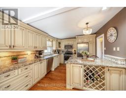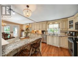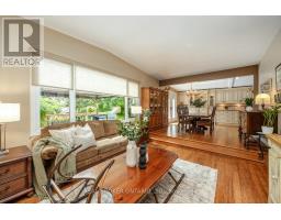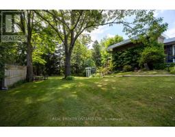 Approx 1/2 Acre in Town! Move right into this meticulously maintained 3+1 bedroom bungalow, nestled on an impressive half acre lot right in town -- a truly rare find! This beautiful home offers a seamless blend of comfort, style and space, both indoors and out. Lavish kitchen features granite counters, tile backsplash, built-in wine rack, stainless steel appliances and plenty of cupboard space. The breakfast bar adds casual dining convenience, while the kitchen overlooks the spacious dining room with bamboo flooring, and a walk-out to the expansive deck - perfect for hosting friends and family. The kitchen cabinetry extends into the dining area creating more storage options for dining, and for displaying your favourite dishes. The sunken living room exudes warmth with a cozy wood burning fireplace, a vaulted ceiling and a picture window that frames views of the spectacular backyard retreat. All three main floor bedrooms are good-sized with ample closet space, hardwood flooring. and offering comfort and functionality. The finished walk-out basement provides even more living space, including a large rec room with laminate flooring and another wood-burning fireplace, a fourth bedroom, a 3-pc bathroom with a luxury shower system, huge laundry room, and abundant storage options. The showstopper is the outdoor space, a private, park-like yard filled with mature trees, vibrant perennial gardens, a large deck, a patio area, and two sheds (one that could be used as a seasonal art room/craft room as has hydro and finished inside with a b/i desk). Whether entertaining or relaxing this yard has it all. This property is truly move in ready, a great chance, to own a rare in-town , private lot with space to roam. (id:50886)