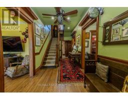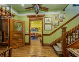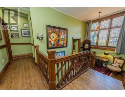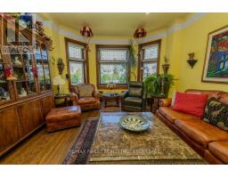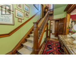 A rare offering of historic grandeur and refined comfort, this stately 5-bedroom, 4-bathroomestate sits gracefully on an expansive, meticulously landscaped lot. Masterfully preserved and thoughtfully updated, the home showcases exquisite original millwork, soaring ceilings, and expansive living spaces across three finished floors and a full basement. Arrive via a tree-lined approach to be greeted by lush gardens and an elegant wrap-around porch perfect for quiet morning coffee or evening gatherings. Inside, a grand foyer opens to generously scaled principal rooms, including a formal dining room, timeless library, and an inviting living room with a wood-burning fireplace. The spacious kitchen blends heritage character with everyday functionality, ideal for both family living and elegant entertaining. Upstairs, five well-appointed bedrooms and four full baths offer both privacy and flexibility, while the third-floor family room provides a tranquil retreat with elevated views. Every space has been curated for comfort, sophistication, and ease of living. Two furnaces (basement and upper floor) and air conditioning are 4 years old, kitchen backsplash and quartz countertop, high end stainless steel appliances, hot tub and fencing on west side of property 3 years, outdoor patio 1 year old. The home has been completely repainted (inside and out) over the past four years. Security system not included. Set in a private, prestigious enclave just minutes from city amenities, this exceptional residence offers the rare blend of historic charm and modern luxury. A truly distinguished property for the discerning buyer. (id:50886)