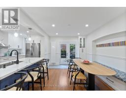 Welcome to 265 Winona Drive! Beautifully renovated detached home in the heart of St. Clair West, showcasing a perfect blend of modern finishes and timeless character. The inviting main floor features a spacious living area with a gas fireplace, wainscotting, and hardwood floors, opening to a stunning custom kitchen with a waterfall island with seating for three, quartz countertops, and stainless steel appliances. The dining area includes built-in cabinetry plus a built-in bench with storage, and double garden doors leading to a private backyard. Walkout to a large deck, and low-maintenance turf, perfect for entertaining and everyday family living. Upstairs, you'll find three bright bedrooms with hardwood floors, including a spacious primary with a walk-in closet. The renovated bathroom offers heated floors, a skylight, and thoughtful storage. The finished lower level boasts excellent ceiling height, a generous recreation room, a fourth bedroom, a full bathroom with a glass-enclosed walk-in shower, laundry, ample storage, and a side entrance. Bonus! A fully finished backyard studio with heat, dedicated power, and a skylight provides the ideal home office, gym, or creative workspace. Legal front pad parking and a new, beautiful front porch. Located steps from parks, schools, shops, and restaurants in a sought-after, family-friendly neighbourhood. (id:50886)
