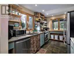 Welcome to 265797 25th Side Road in Meaford, a cozy and inviting 1+3 bedroom bungalow set on just under 2 acres of peaceful, storybook forest bordered by a creek. This charming home features an open-concept kitchen, living, and dining area, two bathrooms, two fireplaces, a walk-out lower level, and a welcoming heated slate floor at the entrance. The feel throughout is comfortable and down-to-earth, perfect for those who appreciate relaxed country living. The property includes three useful outbuildings-a garage turned wood shop with its own electrical panel, a fully enclosed chicken coop, and a heated art studio with loft space-offering room to create, tinker, or explore hobbies. With its tranquil setting, easy access for skiers, and a new hot tub to unwind in, this is a true Meaford retreat ready to enjoy year-round. (id:50886)