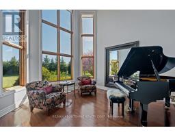 Experience Elevated Living at this Spectacular North Burlington Masterpiece in an Exclusive Enclave of Prestigious Estates. Set on a serene 2.5-acre lot, this luxurious home offers approx. 8,700 SF of exquisitely finished living space, where sophistication meets comfort and innovation. Designed for discerning buyers, this 4-bedroom, 7-bathroom residence delivers the ultimate lifestyle. Gourmet custom kitchen by Gravelle, with extensive solid wood cabinetry, granite counters, hidden doors to large pantry and high-end SS appliances. The walk-out basement is a next-level entertainment hub with Star Wars Sci-Fi theme. Featuring a cutting-edge games room, a dedicated home theatre with immersive 7.1 Dolby surround sound, 12' screen and starlight ceiling. Including flexible space that could easily serve as a 5th bedroom, complete with generous storage. Step outside to a peaceful retreat gather around the stone fire pit or take a scenic stroll along the nearby Bruce Trail. Despite the private, nature-filled setting, you're only minutes from the schools and amenities of Burlington, blending secluded luxury with urban convenience. This remarkable home defines upscale living. Whether you're hosting grand celebrations or enjoying quiet moments, this is where modern luxury meets timeless tranquility. Please click on more information for all luxury features and all inclusions and click on more photos for floorplans. 10+++ (id:50886)