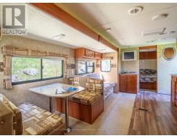 Mill Lake Hideaway 420 ft of Sunset Shoreline. Welcome to this charming year-round home on beautiful Mill Lake, just minutes from Parry Sound. Perfectly balancing historic character with modern comfort, this property offers 420 feet of waterfront on a private 1.06-acre lot. A paved driveway leads to an inviting foyer and an open-concept kitchen and dining area that opens onto a spacious deck ideal for taking in the sweeping lake views. The bright living room, warmed by a propane fireplace, is surrounded by windows that fill the space with natural light. Upstairs, you'll find three comfortable bedrooms and a four-piece bathroom. The level lot enjoys western exposure, a sandy beach area, and a dock. Everything you need for easy, relaxed lakeside living. Additional features include a 32-foot Layton trailer with two queen beds, a kitchen, and a three-piece bathroom, perfect for visiting guest sand a 10' x 20' utility shed for extra storage. Mill Lake, part of a scenic three-lake chain, offers endless opportunities for kayaking, canoeing, and boating. With Parry Sounds shops, dining, theatre, and the soon-to-be-completed West Parry Sound Recreation Centre just minutes away, this property offers both tranquility and convenience. Take a walk around, you'll quickly see why this is a place you'll want to call home. (id:50886)