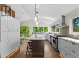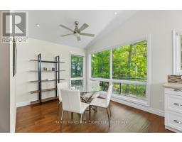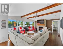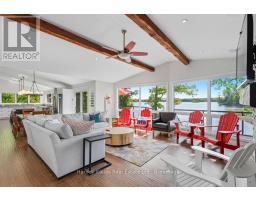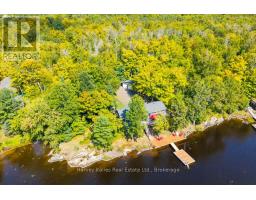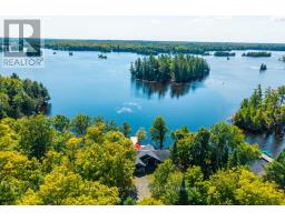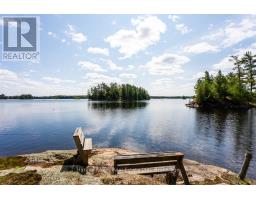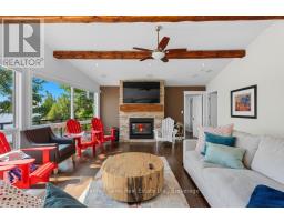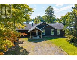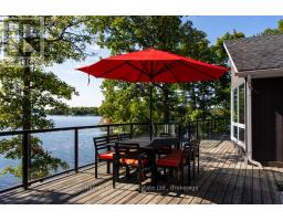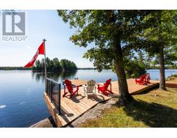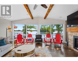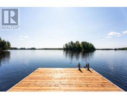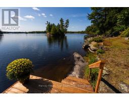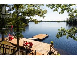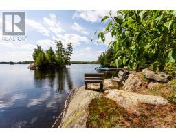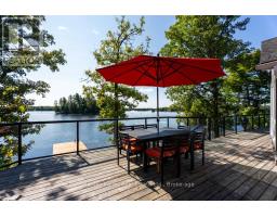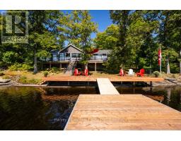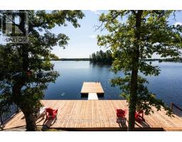 Stunning & inviting 4 season southerly oriented Lake Manitouwabing water's edge hideaway boasting island-dotted views and a beautiful sun-drenched classic rock shelf shoreline. Gentle topography, ease of year round municipally maintained road access with drive to the back door convenience. The all redone, elegant all season, 3 bedroom, 2 bath, sprawling bungalow boasts water views from almost every room, with a lakeside array of south to south-easterly facing windows & sliding glass doors spilling onto a large wraparound lakeside deck which connects down onto the brand new dock with expansive lakefront terrace area and separate granite fire pit patio. The cottage beckons & welcomes one with a lake view as soon as the door opens. Light & bright, luxurious designer infused interior features a gorgeous chef's kitchen with centre island & S/S appliances, water views, breakfast nook, bar area with bar fridge, opening to a generous lake-view dining area, and grande centrepiece great room with handsome floor-to-ceiling stacked stone propane-burning fireplace, and prow-front wall of windows overlooking once again stunning views. Waterside principal bedroom complete with its own walkout, walk-in closet, and luxe ensuite. 2 more main floor bedrooms, bath, laundry, plus the 276 sq. ft. sleeping cabin with bath attached to the insulated 2-car 23' x 23' detached garage. 213' of southerly shoreline, with rock point, rock shelf entry, deep and shallow water, sunrise and island-dotted views. 1.4 acres of level, private lands. Magnificent mechanicals, drilled well, central air, hot water on demand. The list goes on and on. Minutes from the exclusive "Manitou Ridge" Club for golf and dining, and a breeze to access from Toronto. With the ever rare and appealing aspect of having membership in the 'Longhorn Estates' Conservation Area 120+ acre backlands with hiking trails. 4 season cottaging splendour abounds on the ever desired Lake Manitouwabing. Being sold turnkey, fully furnished (id:50886)