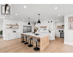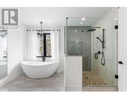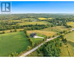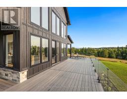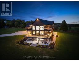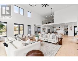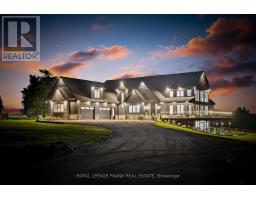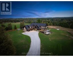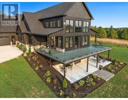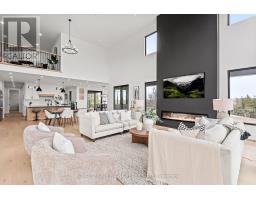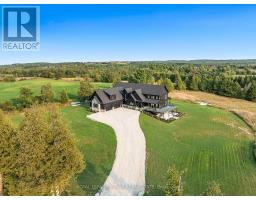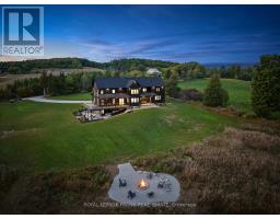 Luxury, privacy & breathtaking views! This 2023-built custom estate sits on 8.93 acres of rolling hills, creeks, and mature trees. With a total of 6,683 square feet of finished living space (per floor plans), this home is packed with high-end features. The great room stuns with 18-ft ceilings, a floor-to-ceiling 84" fireplace, and massive windows offering panoramic elevated views in all directions. The chefs kitchen boasts a 10" island, quartz counters, pro-grade appliances, a walk-in pantry with beverage fridge, and custom plywood cabinetry. To accommodate guests or multi-generational living, the home includes a private in-law suite/loft apartment with a full kitchen, 4-pc bath, separate laundry, and private deck with glass railings. The primary suite is pure luxury with a fireplace, 5-pc spa ensuite with heated floors, walk-in closet with built ins, and private patio access. Upstairs, 3 spacious bedrooms all feature walk-in closets, including one with a private ensuite and the other 2 with a Jack-and-Jill bath. The walkout basement adds even more space, featuring a gym, large rec room, 5th bedroom, full bath, cold cellar, and a private security/panic room. Additional highlights include 9-foot ceilings on the main and lower levels, engineered hardwood & pot lights throughout, a huge wrap-around composite deck with glass railings, fully fenced property with two fire pits & armour stone gardens, 3.5-car insulated garage w/ side-mount openers, & whole-home security system with 5 cameras. All of this is conveniently located just 12 minutes to Costco, 10 minutes to Hwy 407, and 1 hour to Pearson Airport. A rare blend of luxury, privacy & convenience - don't miss it! (id:50886)